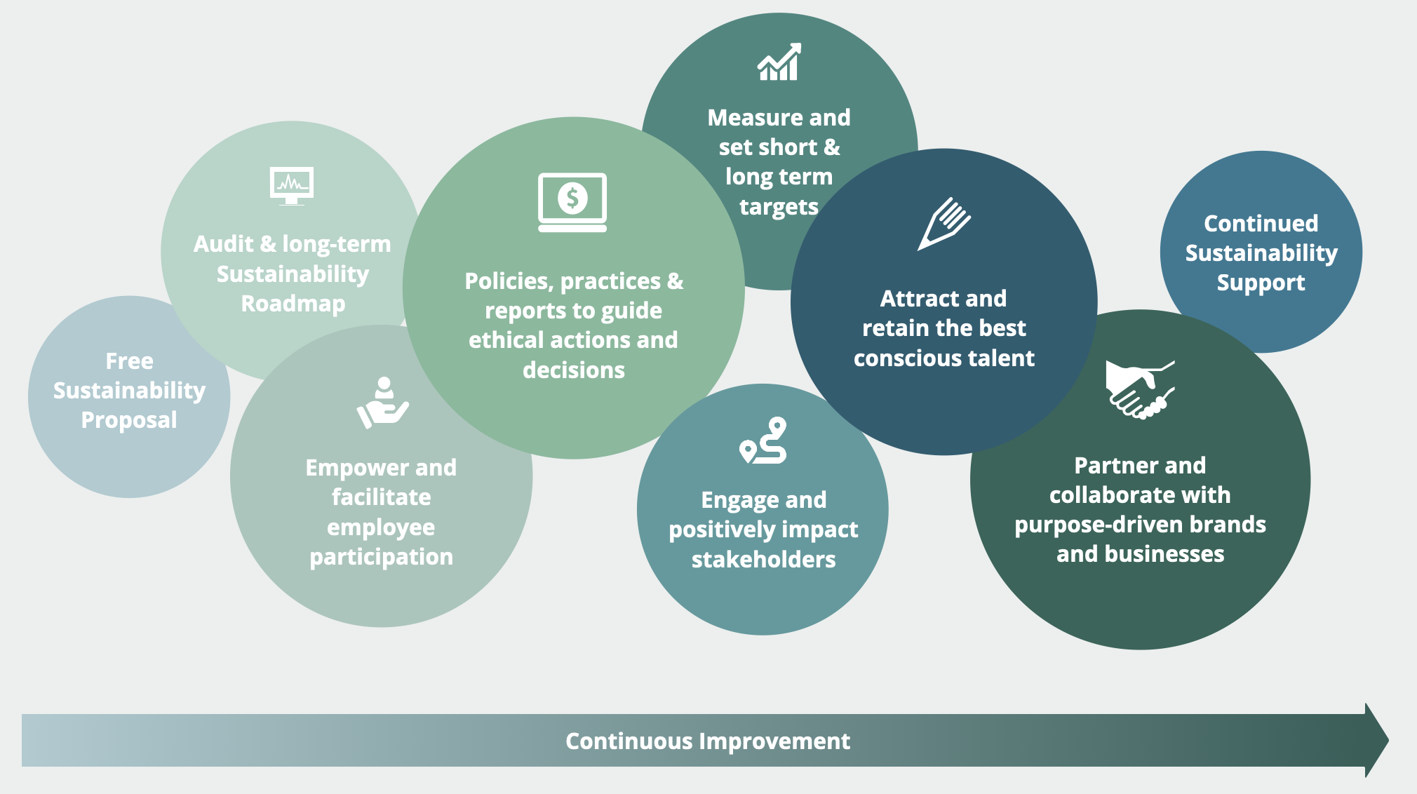After a free discovery call that allows us to get to know your business, we put together a principal Sustainability Proposal to help you gain an initial understanding of your journey ahead and get sign off from the Leadership team.